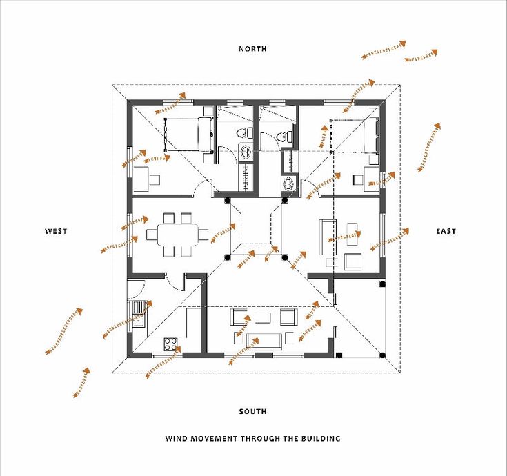 Ventilasi silang adalah teknik di mana udara masuk dari satu sisi rumah dan keluar dari sisi lainnya, menciptakan aliran udara alami.