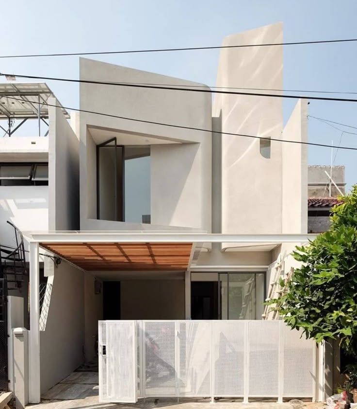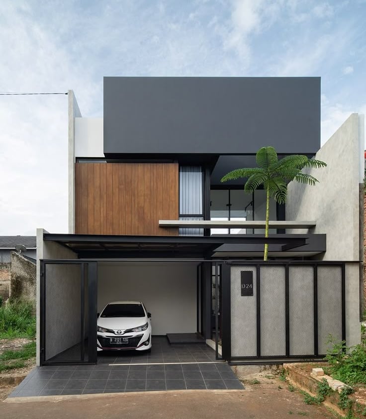 Fasad rumah minimalis modern biasanya menggunakan garis tegas, warna netral, dan material alami seperti batu alam, roster, atau kayu. Tampilan sederhana ini justru memberikan kesan elegan dan bersih.